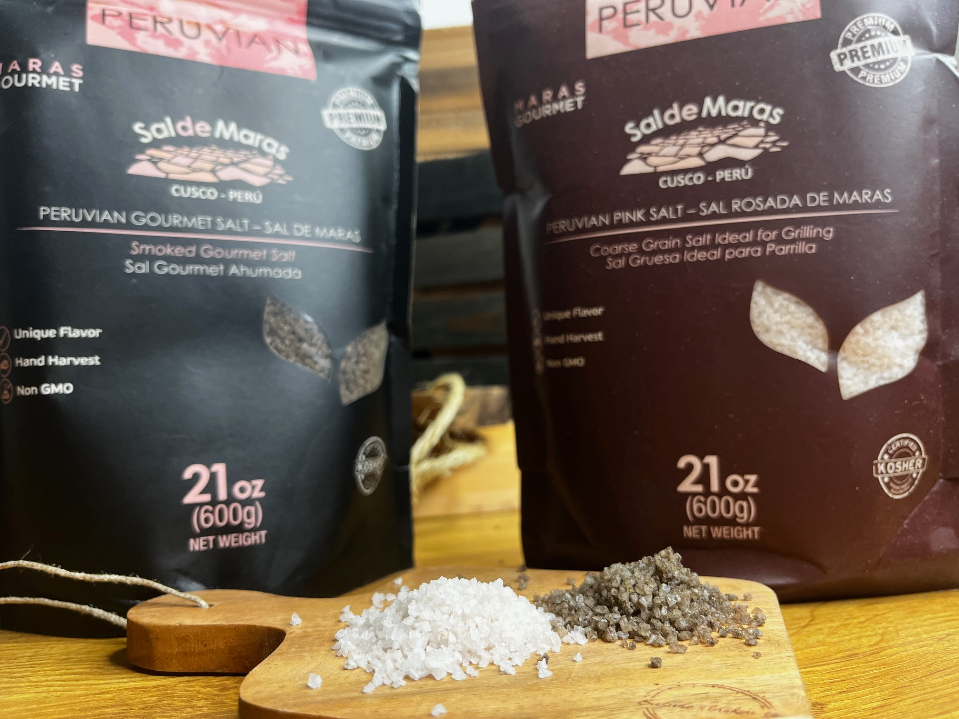 Naše směsi obsahují sůl volnou. A když uvádíme, že je jí 20 % na 100 gramů, tak to znamená, že jsme ji namíchali skutečně tolik. Proto není žádná z našich směsí protivně slaná. Využíváme hrubou sůl z Peru a to buď jemně růžovou nebo zauzenou, kterou sem tam pomeleme. Její chu´t je jemná, vyvážená.